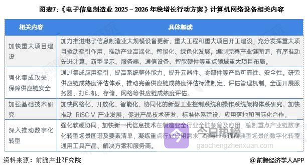 2025年8月工业和信息化部、市场监督管理总局联合发布《电子信息制造业2025-2026年稳增长行动方案》,提出2025年至2026年规模以上计算机设备制造业增加值平均增速维持在7%左右。从多个方面推动计算机网络设备行业发展,具体汇总如下: