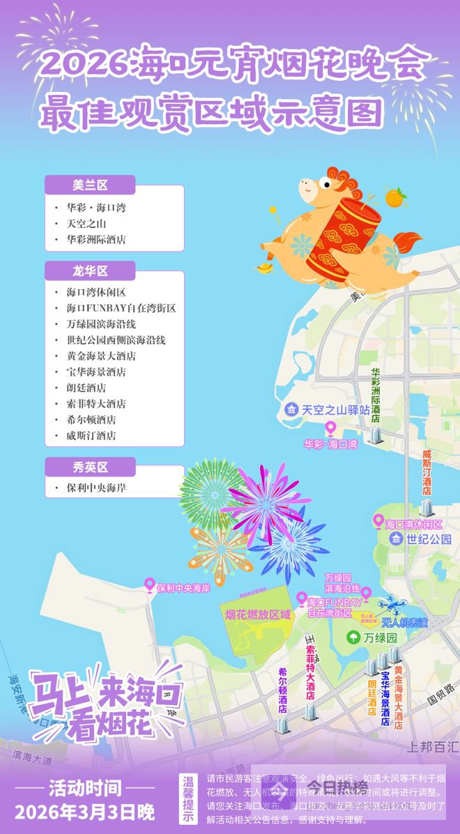 元宵节当天,各大商家、酒店、景区景点结合烟花主题,联动推出具有元宵特色的促消费活动,实现“观赏-导流-消费”闭环,激发节日消费潜力,共同营造热情好客、全城狂欢的海口元宵氛围。