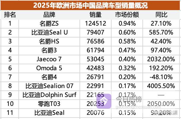 今天我们就盘点一下欧洲市场的数据,看看2025年中国品牌啃下了当地多少市场份额。