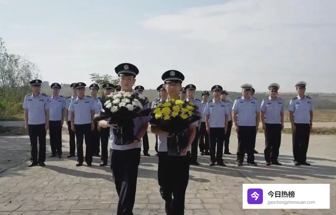 两名民警抬着鲜花缓步向前,脚步轻却沉甸甸。当花篮稳稳落在纪念碑前,掌声自发响起——那是同事们用沉默代替的喝彩。鲜花微绽,花瓣上的露珠映出阳光,也映出民辅警眼中的泪光。这一步,把对烈士的思念系于花茎;这一步,把从警誓言踩进土地。