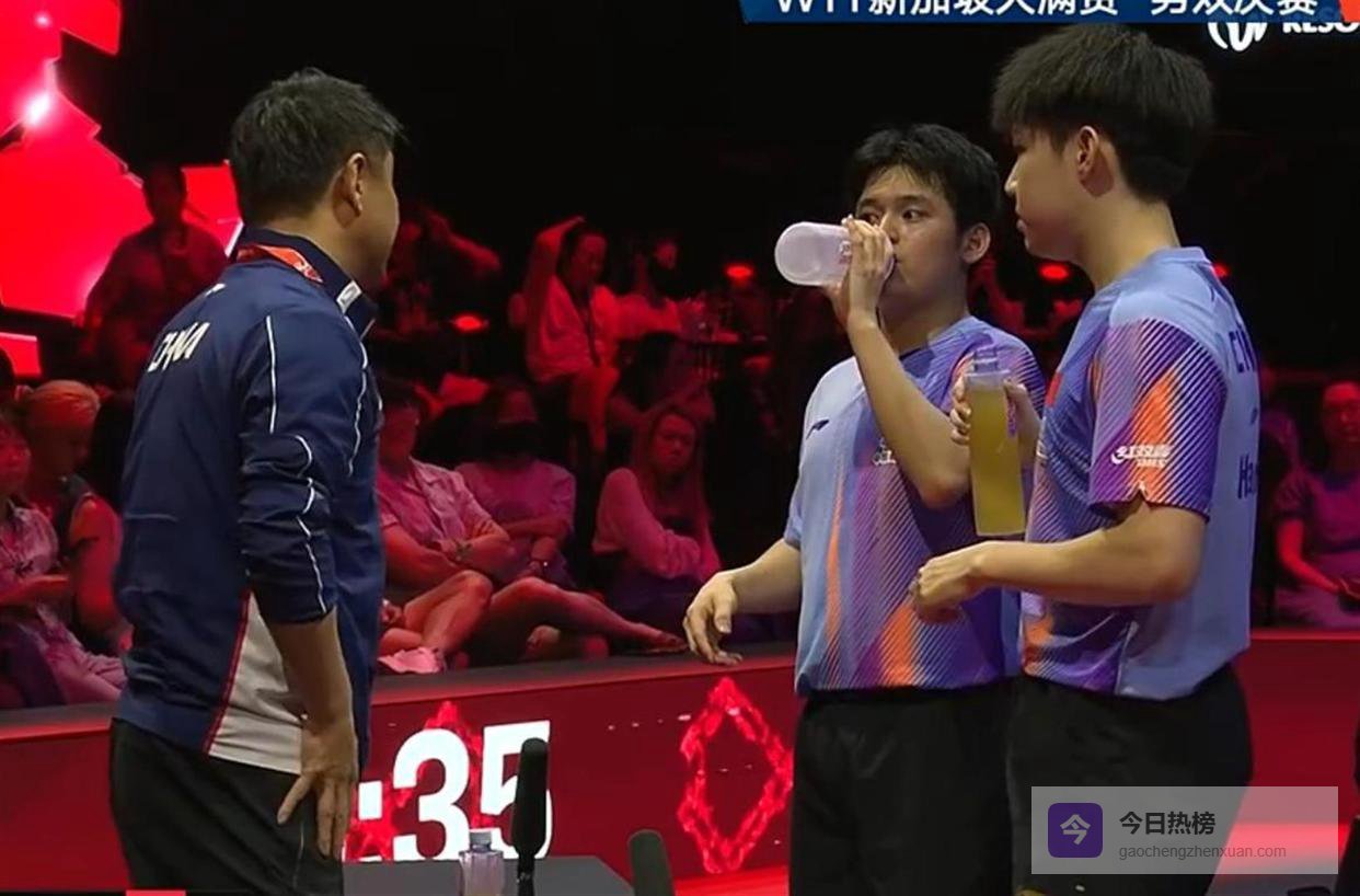 第二局,背水一战的国乒组合做出了调整。 他们开局打得更加主动,取得了2-0、3-1的领先。 然而好景不长,勒布伦兄弟迅速适应了节奏,连得数分,以4-3反超了比分。 场边的中国教练王皓果断请求了暂停。 这是五局三胜的赛制,0-1落后再丢一局,局面将极为被动。