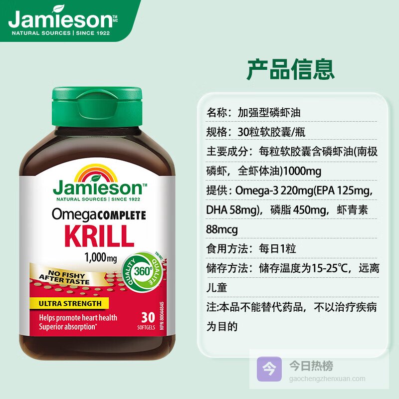 健美生(Jamieson)高浓度深海磷虾油1000mg磷脂含量占比45% DHA+EPA+虾青素护眼健脑¥