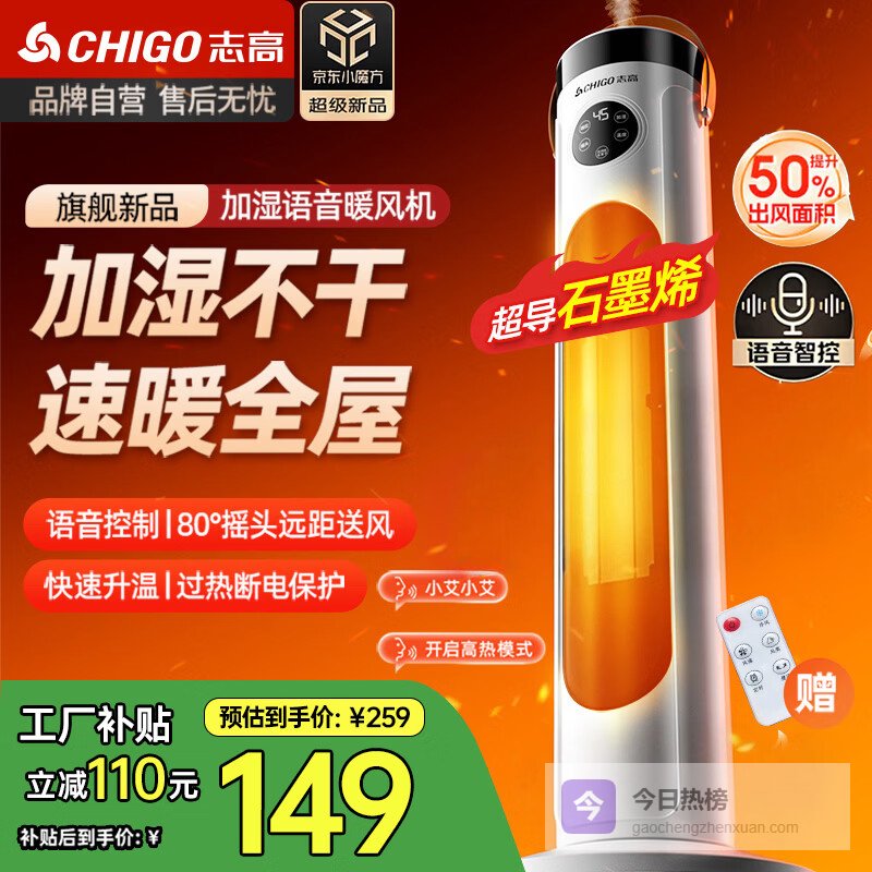 志高(CHIGO)取暖器家用暖风机语音遥控加湿立式浴室暖风扇电暖气大面积节能摇头电暖器卧室客厅烤火炉¥