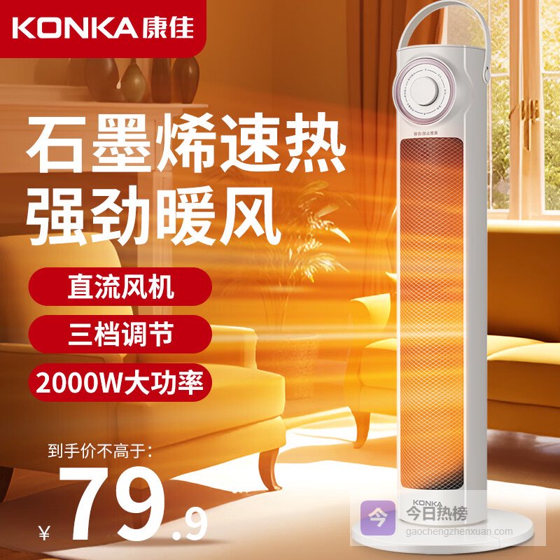 康佳(KONKA)取暖器家用石墨烯暖风机立式电暖气浴室电暖风节能热风机速热暖风扇摇头电暖器烤火炉 机械升级款【650MM机身+石墨烯+广角摇头】¥