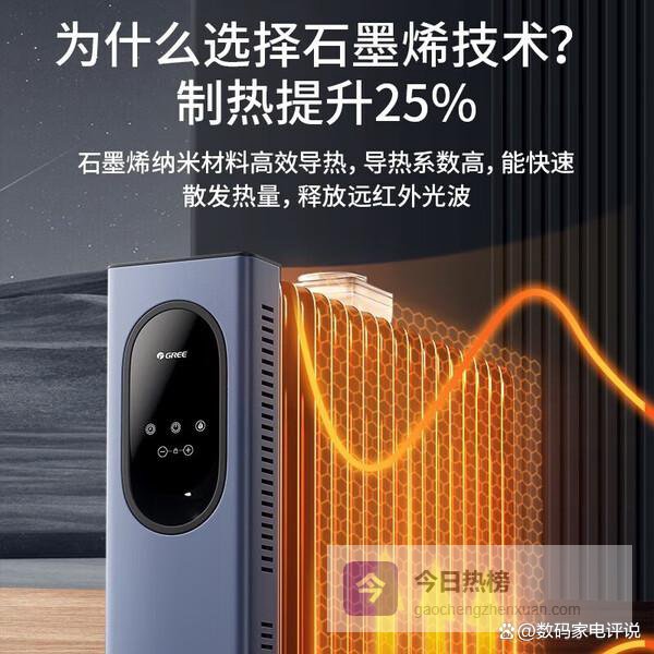 石墨烯速热技术:康佳取暖器采用石墨烯+PTC陶瓷材料作为发热体,确保快速升温。短时间内可以感受到温暖,倒是挺实用的,尤其是在急需取暖的情况下表现不错。其强劲的制热效果让房间迅速变得温暖舒适,省去了等待的烦恼。与此同时,石墨烯材料还能有效提升发热效率,节能省电。