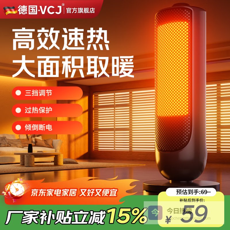 功能介绍段落2:VCJ取暖器采用立体式送暖技术,实现全局多角度热循环,让热量分布更加均匀,暖意传导更自然。通过上下左右广角送风设计,扩大热风覆盖范围,确保房间每个角落都能感受到温暖。特别是其渐变式PTC发热技术,能有效降低能耗,保持低能耗运行,同时实现快速升温,节省时间和能源。