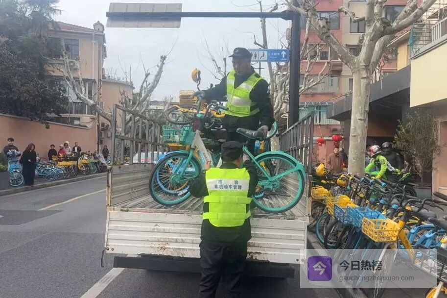 工作人员及时清理共享单车