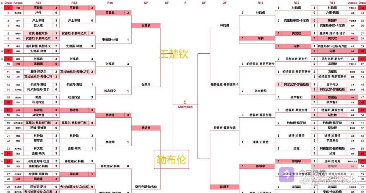 随着林诗栋的出局,上半区的半决赛对阵正式确定。王楚钦将与费利克斯·勒布伦争夺一张决赛门票。从历史交锋记录来看,王楚钦对勒布伦保持全胜,双方职业生涯交手4次,王楚钦全部获胜。其中在去年的WTT中国大满贯赛上,王楚钦正是以4-0的比分横扫勒布伦并最终夺冠。因此,在心理层面和技战术层面,王楚钦都拥有比较大的优势。
