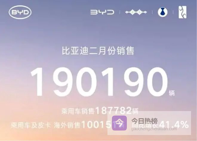 整个2月份的190190销量中,海外市场达到100151辆,增长率超过40%。
