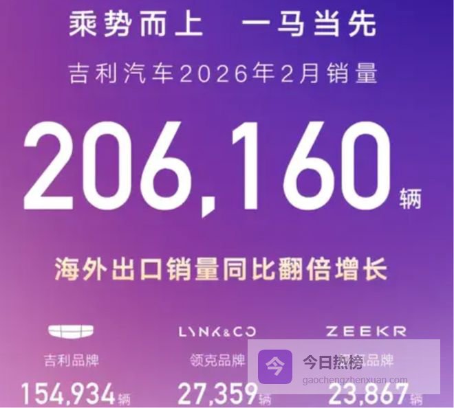 有不少舆论把“月销20万”作为中国自主汽车一哥的竞争门槛,毕竟这是比亚迪自己长期身体力行给大家塑造的认知。反而是李书福和他的吉利,1月2月连续超过20万辆,成功阻击了比亚迪重回销冠宝座,杭州湾一哥离中国自主一哥越来越近。