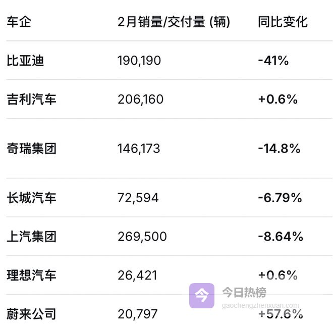 2月几乎所有车企都在跌,跌幅多少的区别而已。