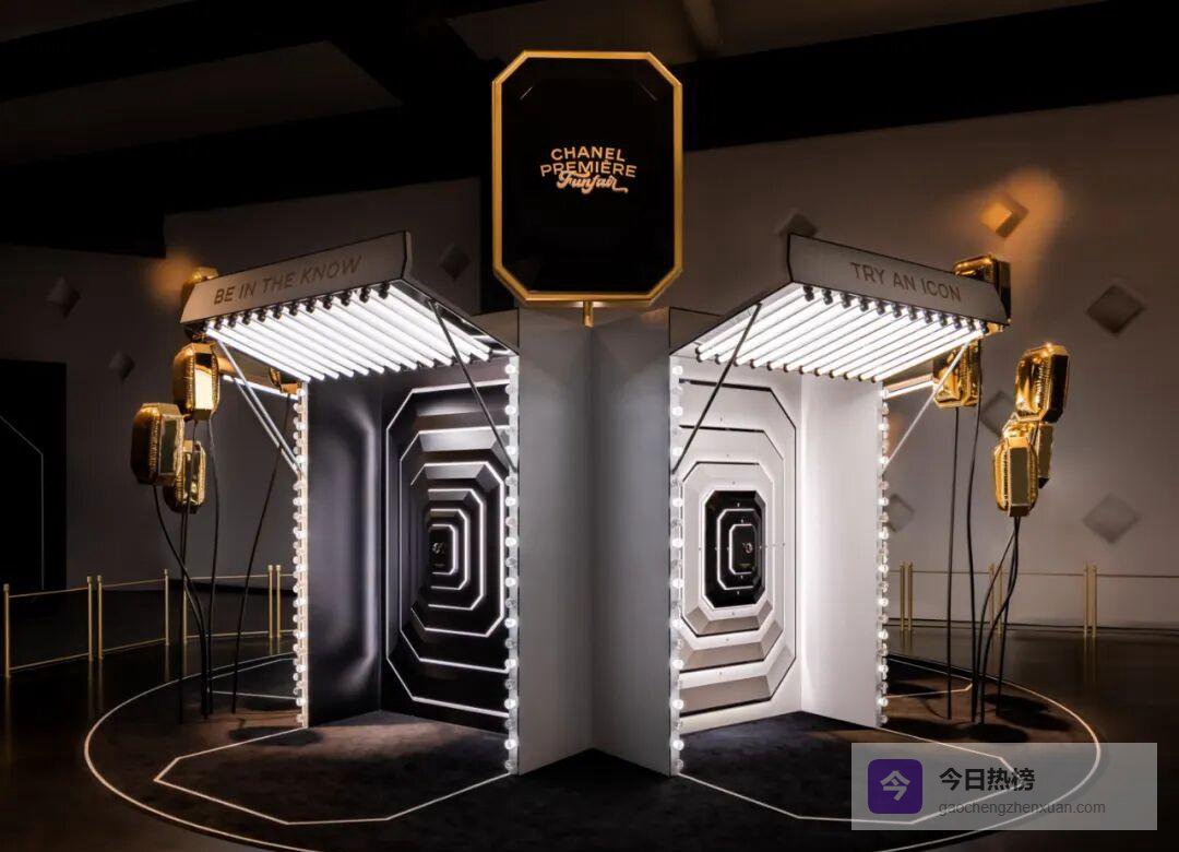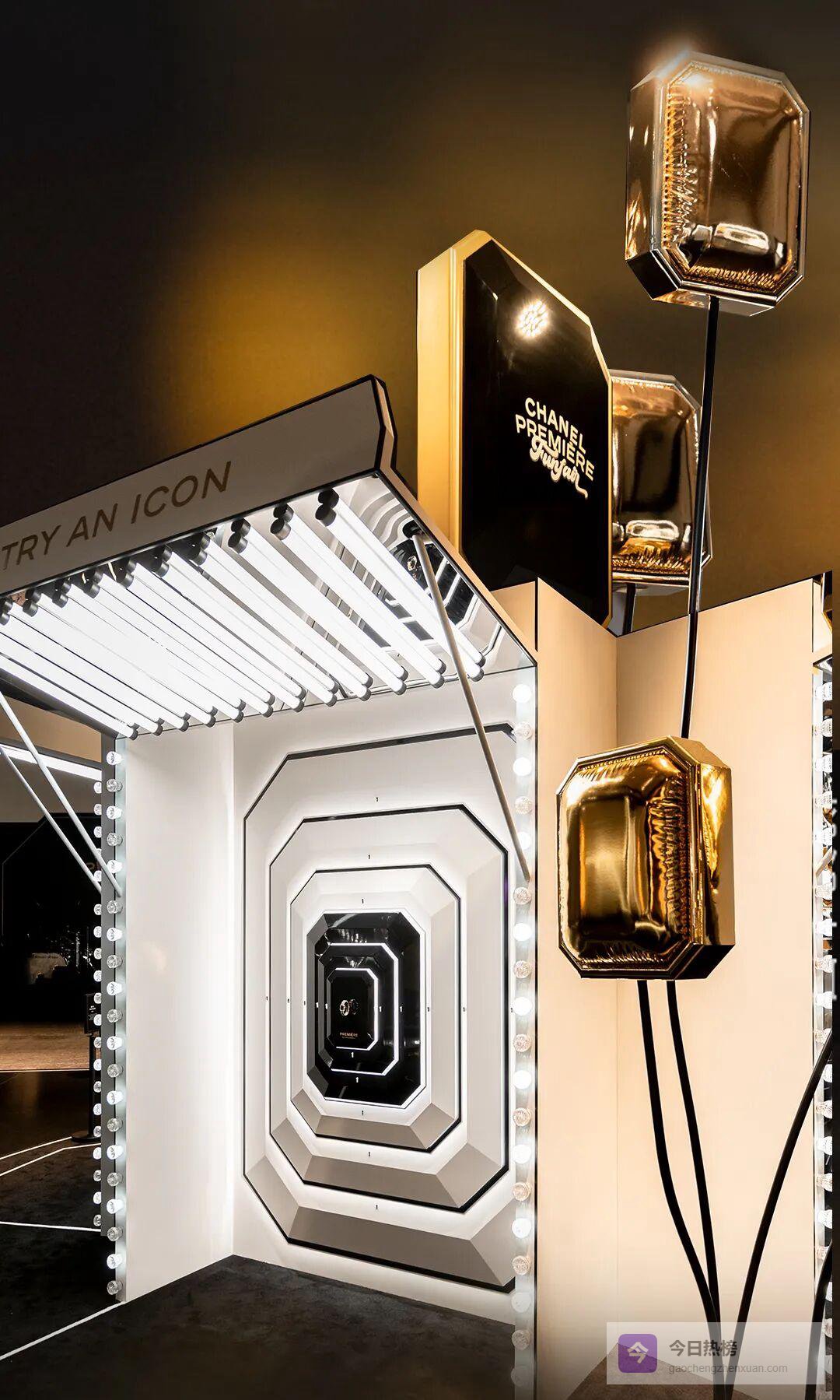 推开巨型八角形门扉,黑金撞色像墨汁滴入牛奶,瞬间铺满视野。背景墙像一面立体取景框,无论站着、蹲着还是仰头,镜头里都能自动生成“经典香奈儿大片”。空中飘浮的金色八角形气球随风轻摆,与PREMIÈRE腕表表壳轮廓遥相呼应,仿佛把巴黎夜空折叠进了游乐场。