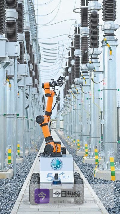 安徽滁州南谯区一座变电站,5G智能巡检机器人对供电设备进行巡检。