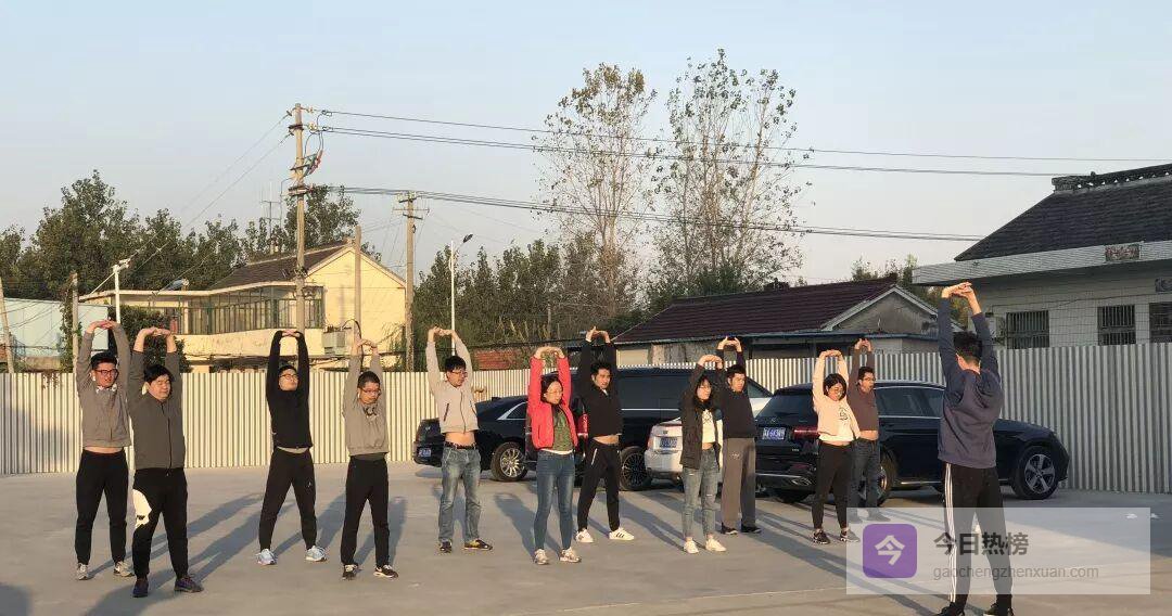 清晨5:40—6:00 出操,围着基地跑道完成1公里热身;