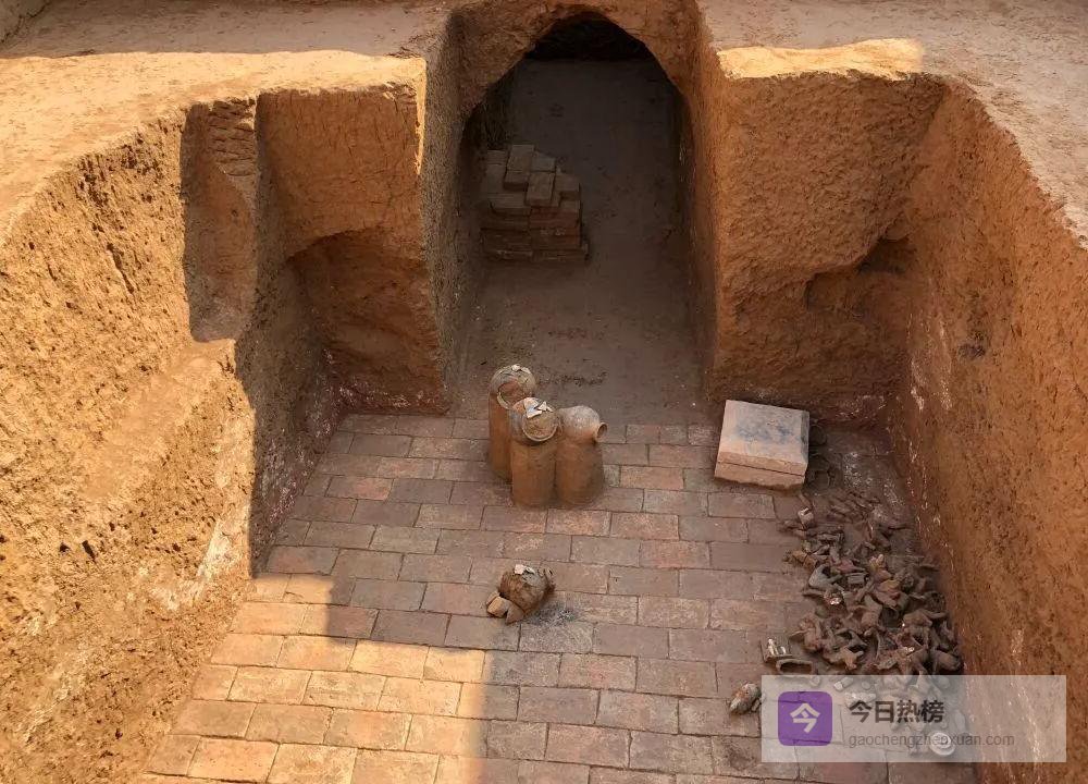 上图即为宇文觉墓的墓室现场,斜坡墓道与四个天井的布局清晰可见,墓室底距地表约10米,总长度达56.84米,典型北周风格。