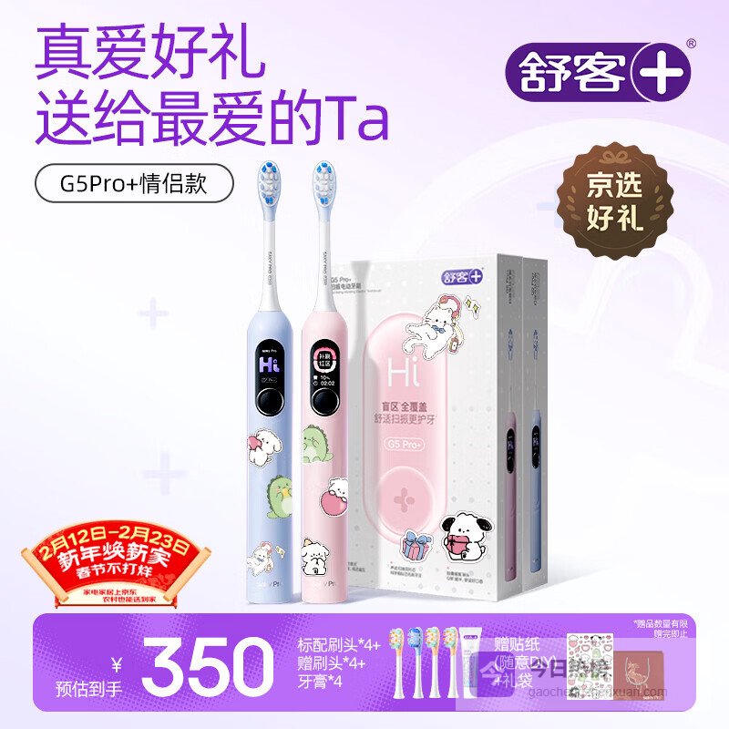 舒客AI智能化 大屏扫振电动牙刷成人/学生送男友/女友 情侣生日情人节新年货礼物G5 Pro+情侣款¥