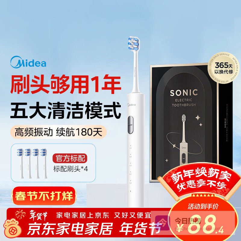 美的(Midea)电动牙刷S1PX白色成人/学生 180天长续航 5种模式 磁悬浮声波马达 男女士专用 年会礼品情人节礼物¥