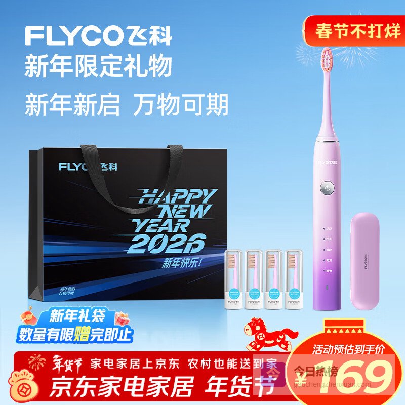 飞科(FLYCO)电动牙刷女士专用成人情侣送男女朋友新年生日情人节礼物年货礼盒智能声波软毛牙刷FT7105浪漫粉¥