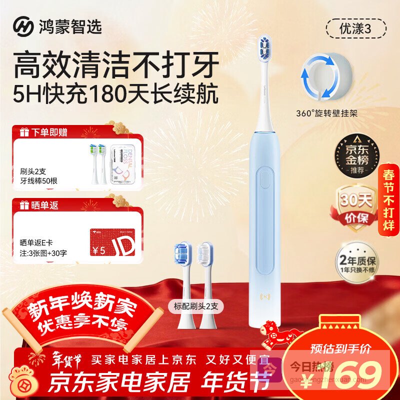 华为智选鸿蒙智选力博得智能声波电动牙刷优漾3 生日礼物成人学生牙刷深度清洁亮白180天长续航 情人节礼物¥