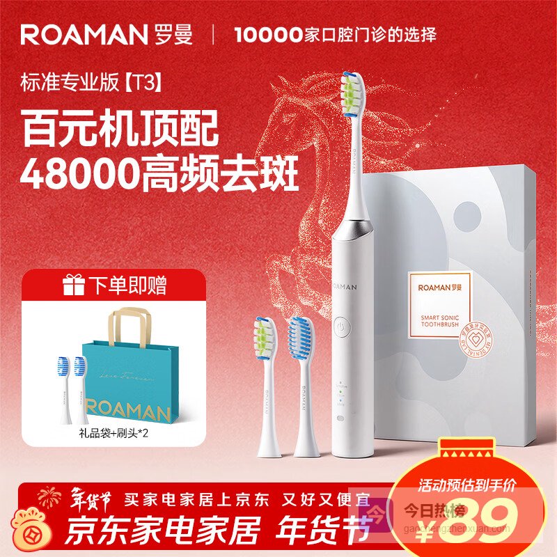 罗曼(ROAMAN)小熊电动牙刷声波48000高振频学生成人男士女士送情侣女朋友节日新年礼物年会礼品T3¥