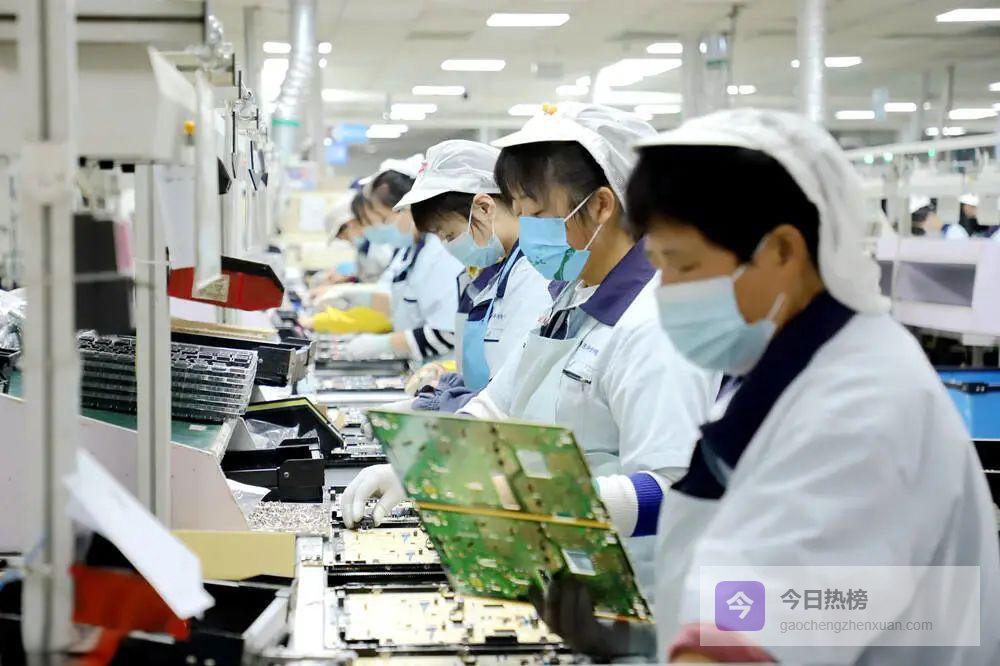 图/11月3日,青岛西海岸新区一家高科技电子产品出口企业车间内,工人在生产线上加工电子配件完成出口订单。