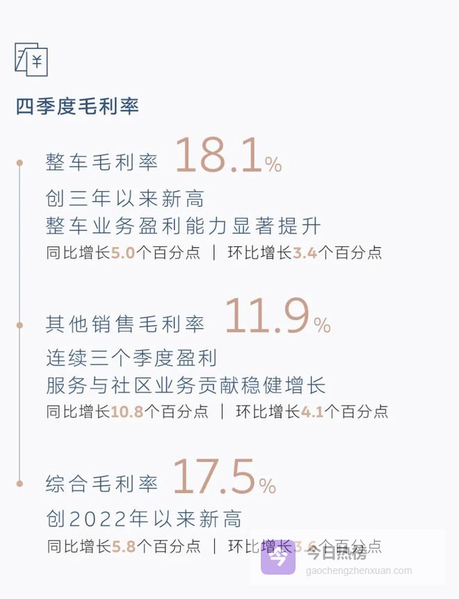 因为在四季度,蔚来的整车毛利率达到了 18.1% 。这在新势力品牌里面,已经属于中等偏上了,关键还是在于这台新的 ES8 。