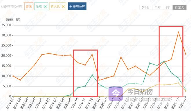 另外,也有一部分的功劳得算在乐道和萤火虫头上,比如乐道在去年四季度取得 3.83 万台的成绩,同比 2024 年要高不少,而萤火虫的 1.91 万台则是凭空多出来的,因为 2024 年的时候它还没上市。