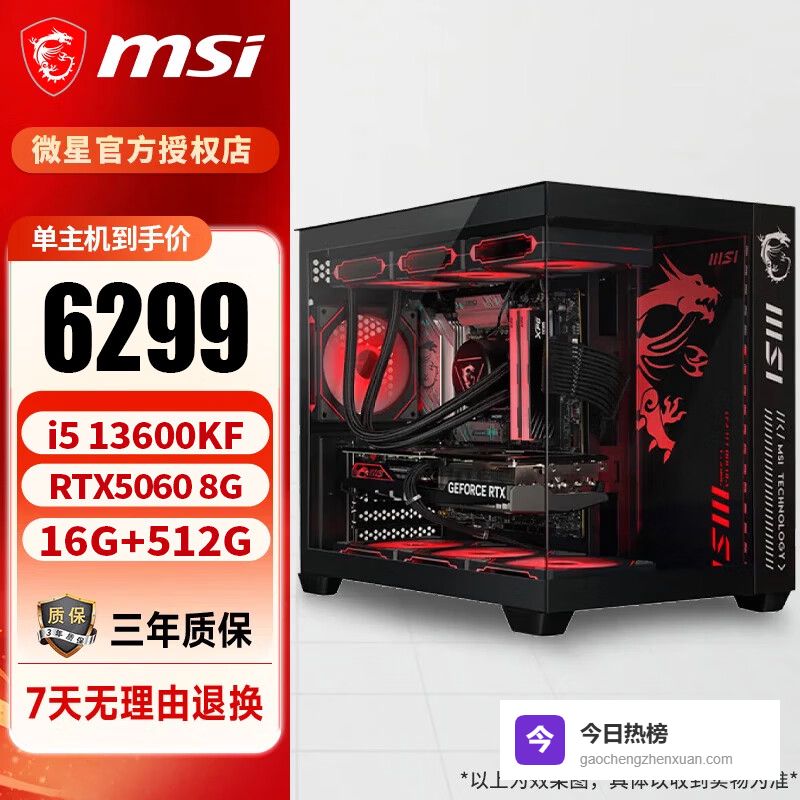 微星(MSI)全家桶14代酷睿i5 14600KF/5060/5060TI DIY水冷电竞游戏设计直播主机组装整机台式电脑 配置二13600KF+5060+16G 单主机¥