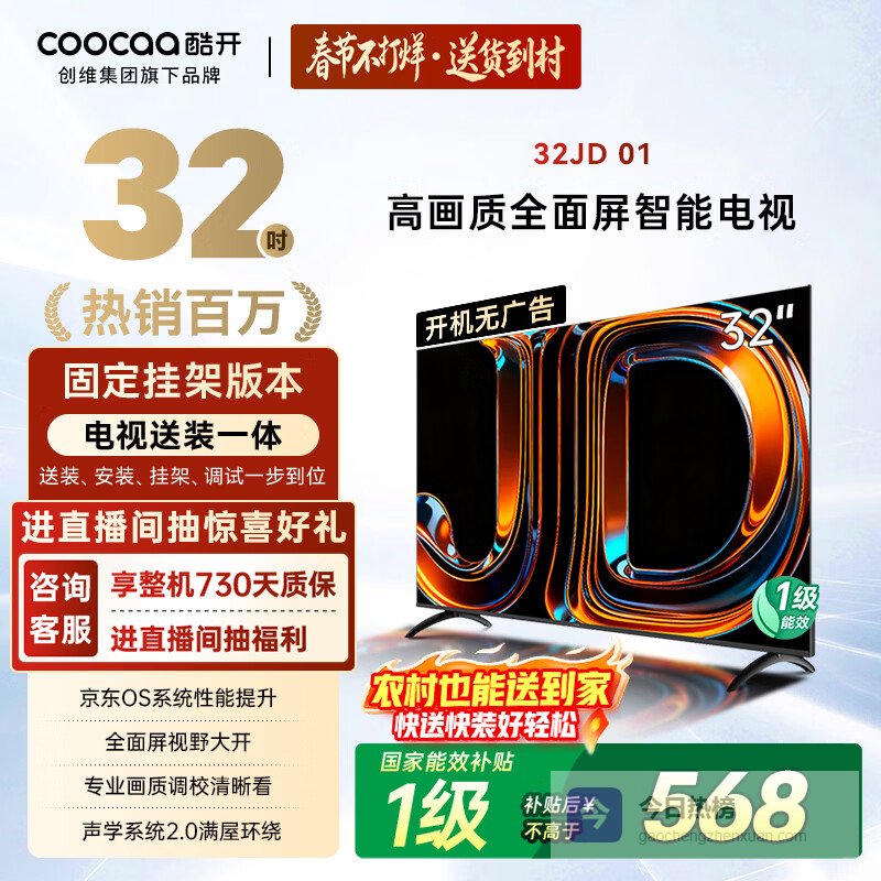 酷开创维京东联名32JD 01系列32英寸[送装一体]高清智能无线 8G有线超薄全面屏游戏液晶平板电视机32K3¥