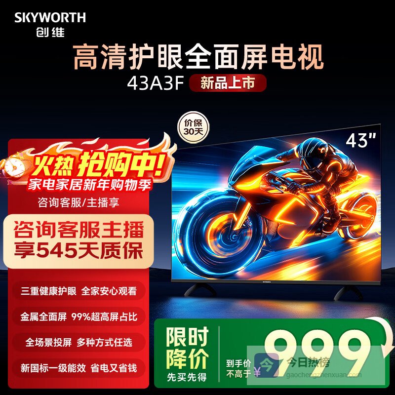 创维平板电视机43寸 健康护眼光学防蓝光 全高清金属全面屏液晶平板电视机43吋 H3升级款 43英寸 电视【官方直营】¥