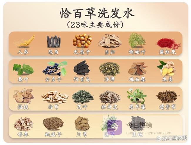 恰百草的核心配方包括23种中草药成分,如人参、皂角、无患子、何首乌、当归、侧柏叶、藏红花、桑叶、女贞子等,这些成分都经过精心调配,确保在控油的同时,能够深层滋养头皮,修复毛囊,促进头发健康生长。与市场上大多数防脱洗发水不同,恰百草零硅油、零酒精、零激素、零化学添加剂,避免了化学成分对头皮的伤害,非常适合敏感头皮使用。