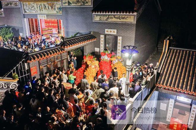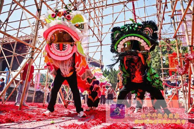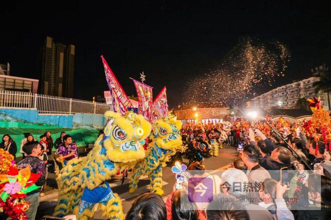 醒狮起舞、烟花璀璨、乐队助兴......