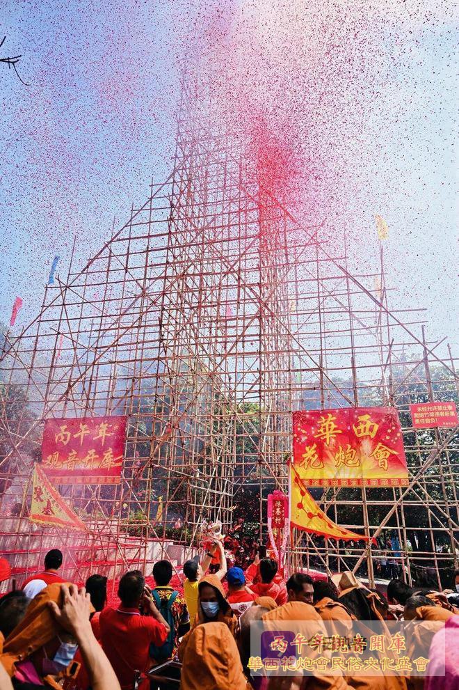 随着长串的花炮被点燃