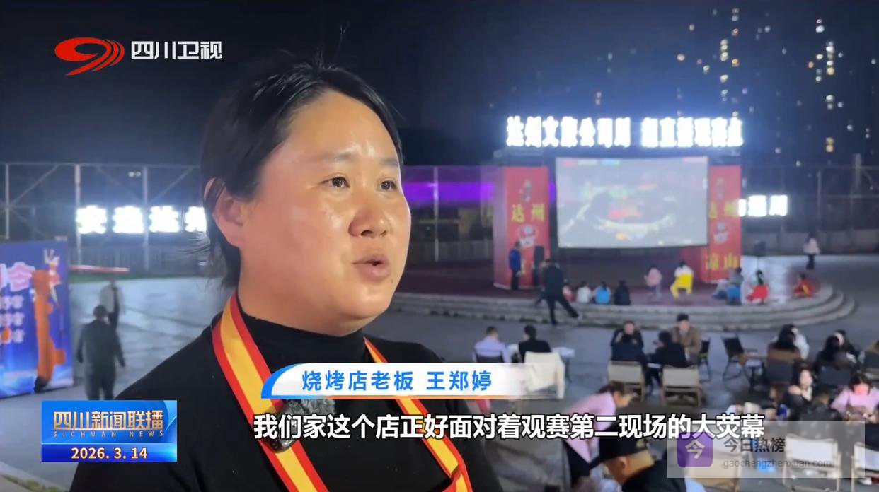我们家这个店正好面对着观赛第二现场的大荧幕,所以今天晚上生意也非常好。客流量大概比平时增加了50%左右。一场热血球赛,一城烟火盛宴。今晚19点35分,绵阳与乐山,自贡与宜宾也将展开激烈角逐,3月21日也就是下周六,“川超”决赛阶段第二轮比赛也会继续打响,让我们共赴足球盛宴,共享城市狂欢!