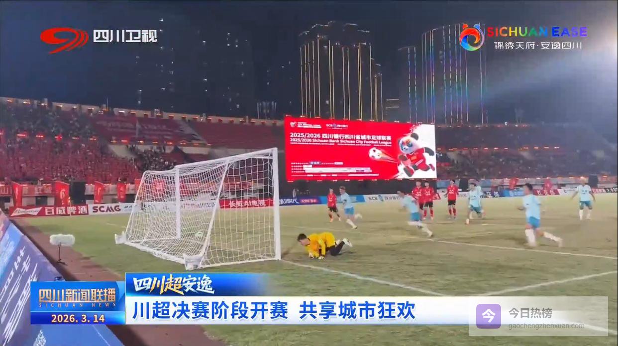 决赛阶段在达州市体育中心启幕,揭幕战上,达州川汉子队1:1战平凉山好医生队,而在今天下午进行的比赛中,南充丝绸源点队1:6不敌成都锦城队。赛场内激战正酣,赛场外,足球搭台、经济唱戏,“川超” 赛事持续激活城市消费潜力。“川超”决赛阶段开赛仪式上,“旗开得胜”马术秀驰骋绿茵、四川全兴名宿拉歌暖场互动、精彩歌舞轮番上演、21市州球队代表荣耀亮相、《马力全开》《四川超安逸》宣传片现场发布,在《成就你梦想》压轴演唱中,现场氛围也推向高潮。