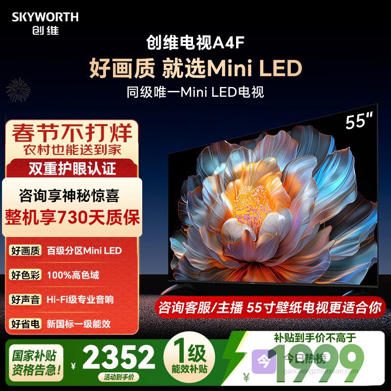 创维电视A4F 55英寸 百级分区Mini LED 144Hz高刷 HI-FI音响 一级能效 国家补贴¥