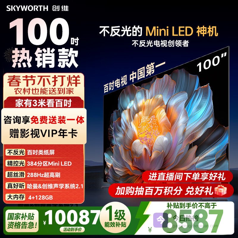 创维电视A4F 100英寸 Mini LED不反光屏 类纸屏 288Hz高刷 哈曼音响 国家补贴¥