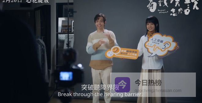 后来,她碰上吴昊伦,他是人工耳蜗的代言人。现实中吴祉昊自己就是聋人,跟角色经历差不多。他什么都试着学,手语、读唇、耳蜗加助听器,在聋人和听人之间切换自如。