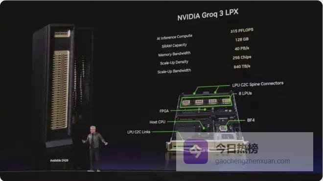 为解决极速推理(1000Tokens/秒)的带宽瓶颈,英伟达整合收购的Groq,推出非对称分离推理方案。Groq芯片拥有500MBSRAM,主打极致速度;Rubin芯片拥有288GB内存,主打极致容量。两者通过Dynamo框架协同:Pre-fill和Attention交给VeraRubin处理,Decode阶段的Token生成卸载给Groq,延迟直接减半。这种组合,让高端推理性能再涨35倍,解锁了此前不存在的极速推理场景。