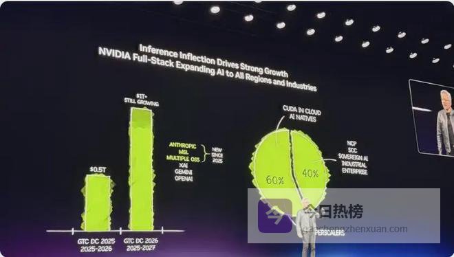 目前,英伟达60%业务来自全球前五超大型云服务商,剩余40%覆盖主权云、企业、工业、机器人、边缘计算等全领域。这种“通用 多元”的布局,让万亿投入能被充分利用,拥有长久生命周期,也让“成本最低的AI基础设施”的定位,成为万亿需求的坚实基础。