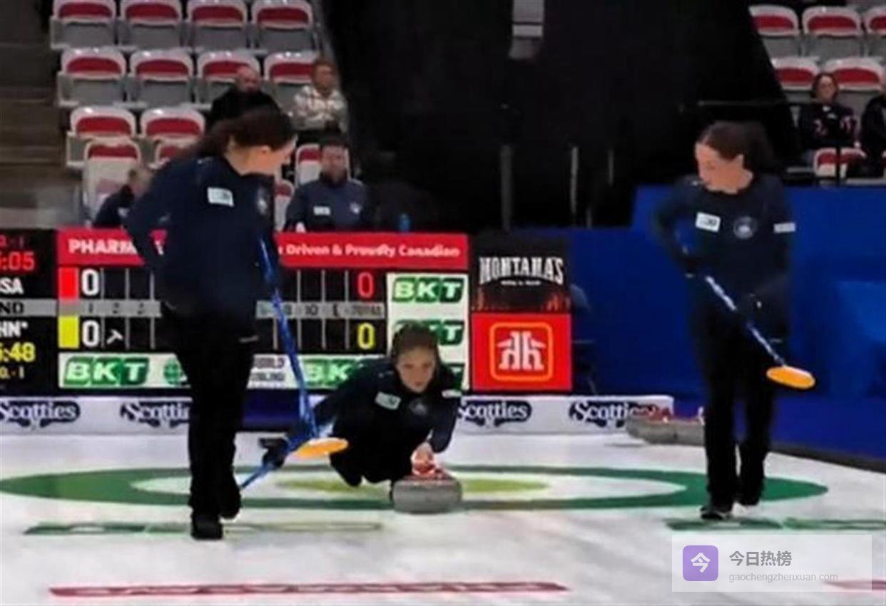 这1分就像打开了中国队进攻的开关。 带着1比0的领先进入下半场,中国姑娘们的气势完全起来了。 第五局,轮到美国队后手进攻,她们本有机会扳平甚至反超。 但压力之下,美国队的年轻选手们出现了波动。 四垒施特罗西在一次关键的旋壶时,力度控制出现偏差,壶的线路和预期相差甚远。 这个机会被中国队敏锐地抓住,她们成功偷到了1分。 比分变成了2比0。