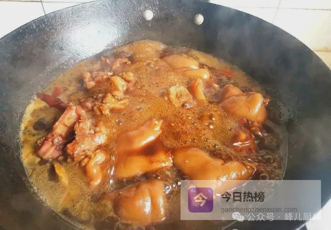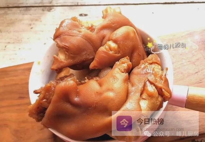做法:1、猪蹄清洗干净,分割成块,清水浸泡。2、把猪蹄放入锅里,加入料酒、姜片,煮开去腥,这样做好的猪蹄就不会有异味。3、起锅放入花生油烧热,放入葱、姜、花椒、大料爆香,倒入汆烫好的猪蹄翻炒均匀,煎至猪蹄发黄。4、倒入老抽,翻炒均匀上色,再倒入开水,开水要没过猪蹄2公分。5、大火烧开后,加入2大勺红糖,盐少许,改成小火慢慢炖,倒入水的量不能太少,太少了影响猪蹄入味。6、小火满满炖2小时左右,直到猪蹄炖软烂,鲜香入味,收汁出锅即成。7、做好的猪蹄上桌,软糯喷香,咬一口真的太过瘾了。