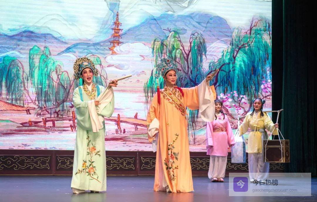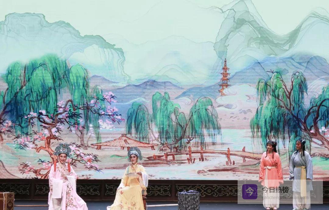 梁山伯与祝英台在书院门口草桥结拜,四九、银心左右相随,一句“同窗三载情如山”唱得台下掌声四起。饰演梁山伯的徐萍与饰演祝英台的曹旸以眼神交流,把少年间的纯真与憧憬演得活灵活现。
