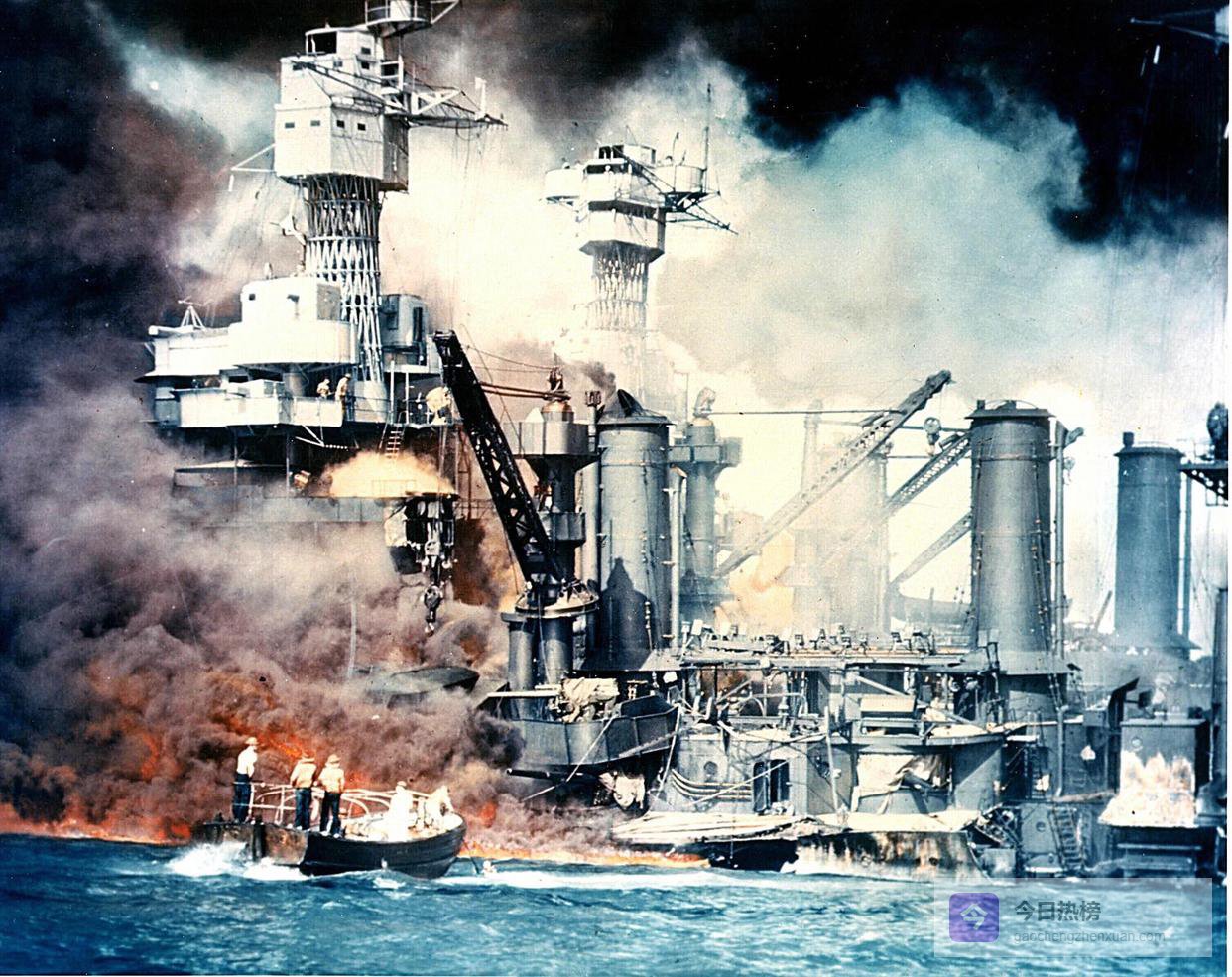 这是1941年12月7日珍珠港事件发生时美国战舰被轰炸后的资料照片。新华社发从日本方面来理解,珍珠港的往事,瞬间将日本从“受害者或被忽略的盟友”变成了“袭击美国的罪人”。潜台词是 ,“别谈什么‘提前通知’的道义,日本历史上做得更过分”。