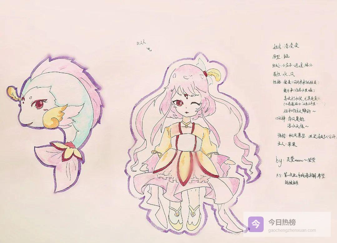 2.2 △ 顶呱呱拟人 渊泺笔下的顶呱呱换上杏色西装+百褶短裙,领口蝴蝶结比本人还活泼,仿佛下一秒就要旋转跳进花海。