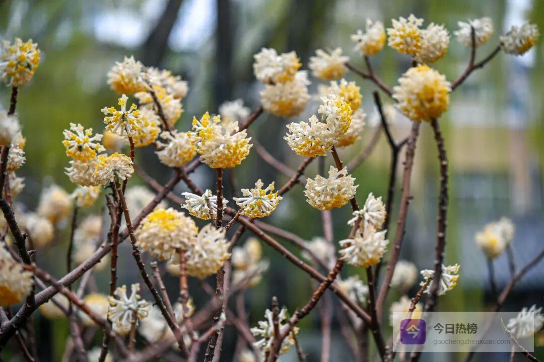 万竹园的结香花藏着小众惊喜,一簇簇金黄小花聚成绒球状,裹着淡淡的绒白,像一串串凝结的暖阳,浓郁的香气漫溢四方。