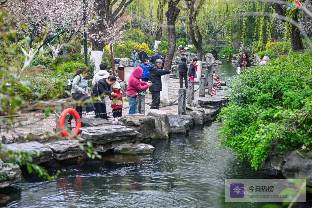花影缀泉边,春意满亭台,园内繁花各展风姿,把趵突泉妆点得灵动又热烈。