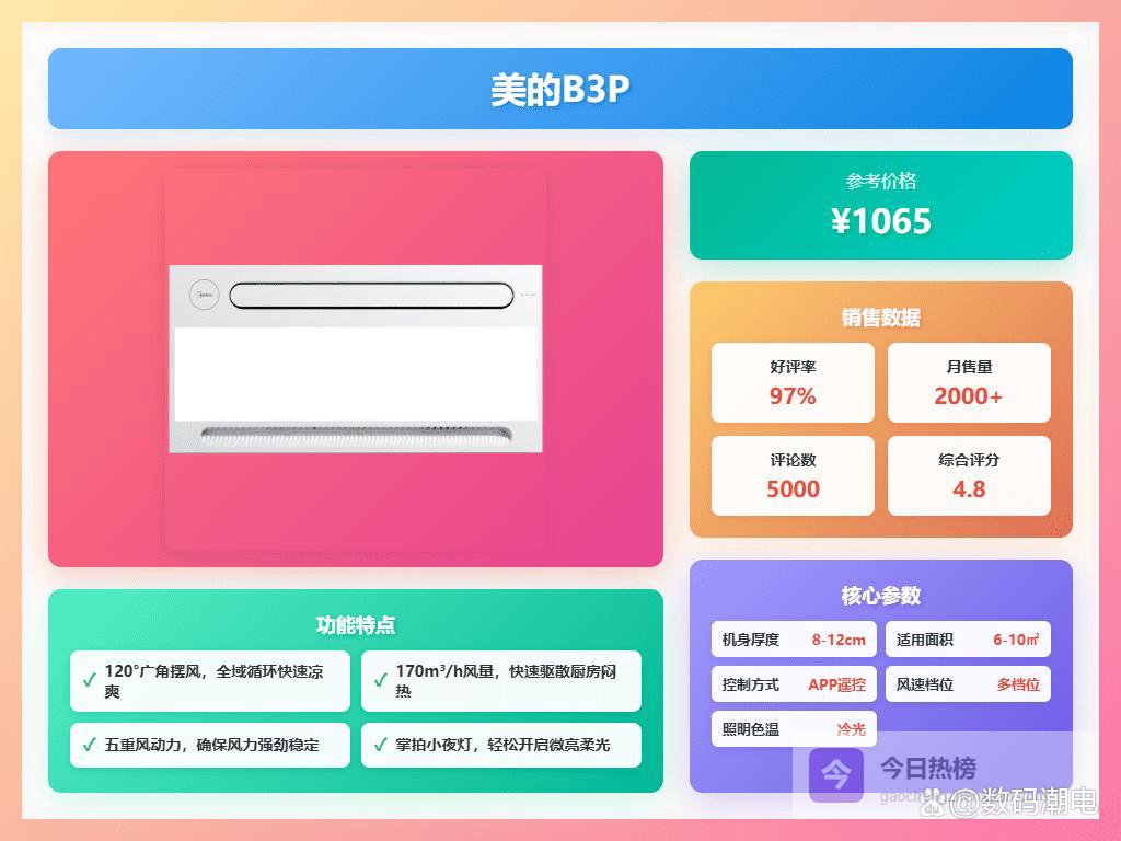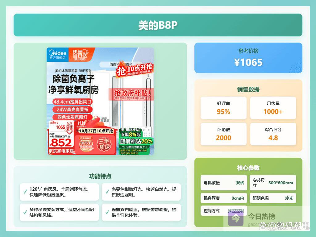 其实美的照明凉霸怎么样,好用吗?我觉得还是挺值得买的。毕竟现在技术越来越成熟,解决厨房闷热问题的效果也越来越好。而且美的在照明和家电方面也算老牌子了,质量和售后都有保障。选购的时候,当然要根据自己的需求和预算来。接下来我整理了6款口碑不错的,大家可以看看,说不定能找到适合你的那一款。