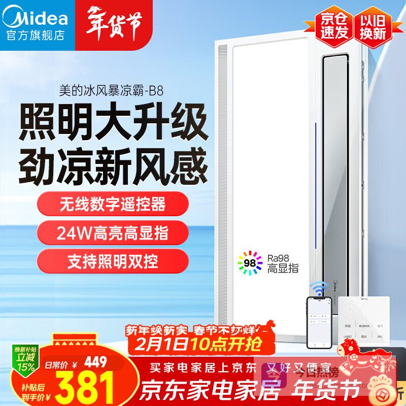 美的(Midea)吹风凉霸照明换气一体摆风无线遥控负离子除菌凉霸B8P¥