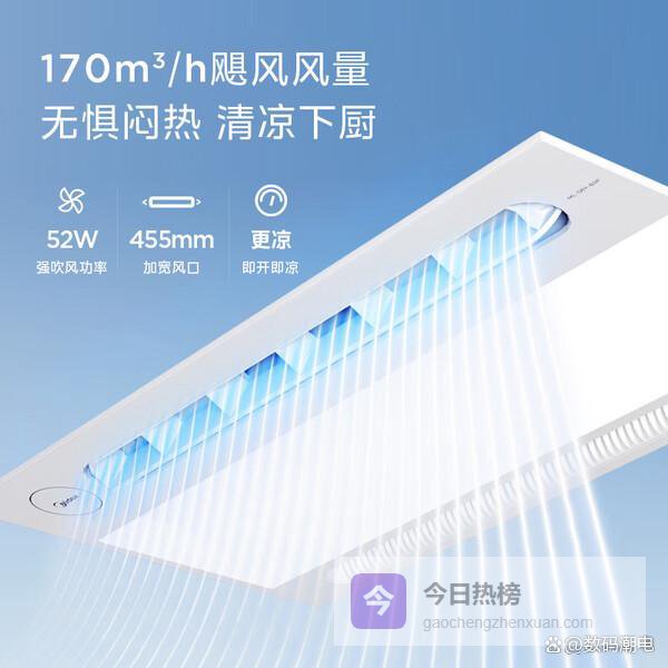 这款美的ML-D6Y-B3P集成吊顶式吹风凉霸,确实在功能设计上挺贴心的。它拥有455mm宽的出风幕,能有效覆盖较大面积的空间,凉爽感更均匀。配备多档风速调节,无论是需要轻柔的送风还是强劲的快速冷却,都能轻松满足。而且,120°的广角摆风能实现全方位的自动循环,快速带走厨房或房间的闷热空气,提升舒适度。